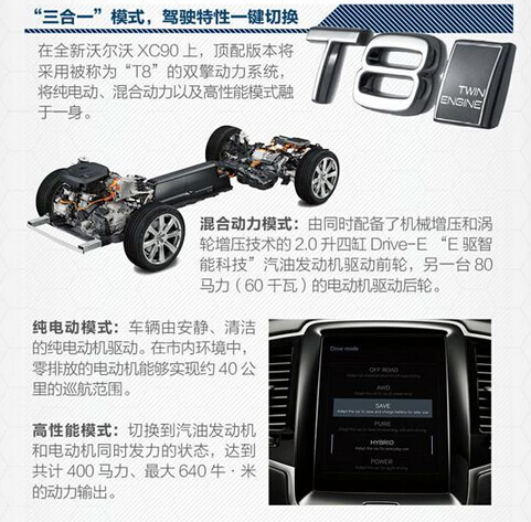 從今年5月起,復(fù)興中的沃爾沃汽車發(fā)布了未來(lái)旗艦級(jí)產(chǎn)品全新沃爾沃XC90的內(nèi)飾設(shè)計(jì)、SENSUS車載智能交互系統(tǒng)以及B&W音響系統(tǒng)等一系列產(chǎn)品亮點(diǎn)。今日,全新沃爾沃XC90關(guān)注的動(dòng)力系統(tǒng)閃亮登場(chǎng),其所搭載的Drive-E“E驅(qū)智能科技”動(dòng)力總成實(shí)現(xiàn)了強(qiáng)勁動(dòng)力與綠色之間的平衡。