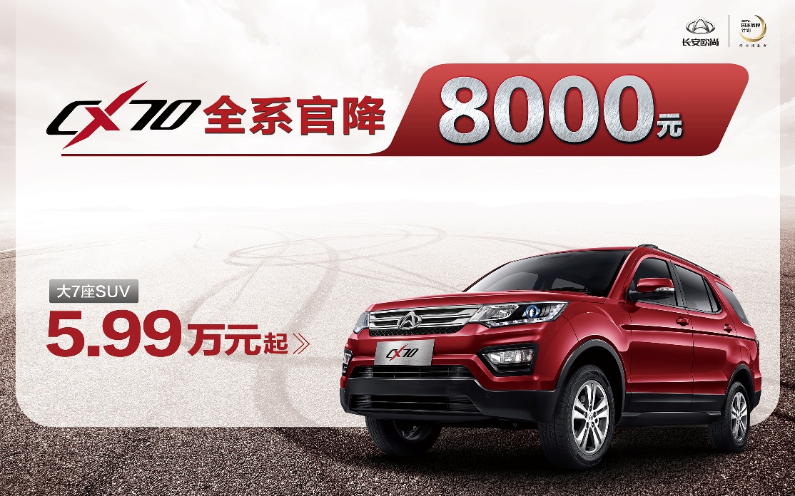 長(zhǎng)安歐尚官方公布,即日起長(zhǎng)安CX70全系車型官方售價(jià)大幅下調(diào),降幅高達(dá)10000元!優(yōu)惠力度大。