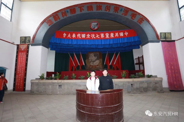 同志們在楊家?guī)X革命舊址中央大禮堂前合影留念